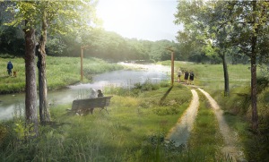 PUBLIC OPEN SPACE: The area that was the impoundment can be a new public space and maintained as a wet meadow to ensure views across the historic impoundment are maintained.