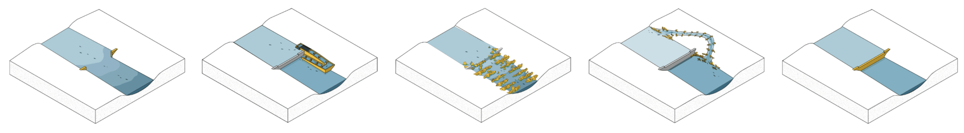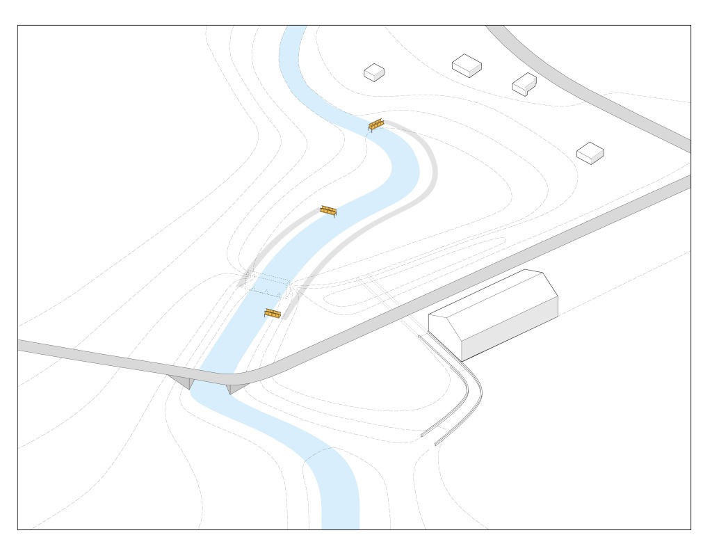 Following are diagrams showing speculative ideas for how to design a site post dam removal.