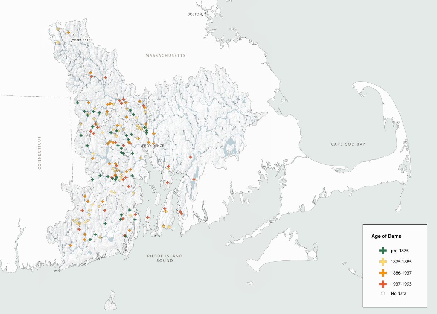 Age of Dams in the Narragansett Bay and Coastal watersheds