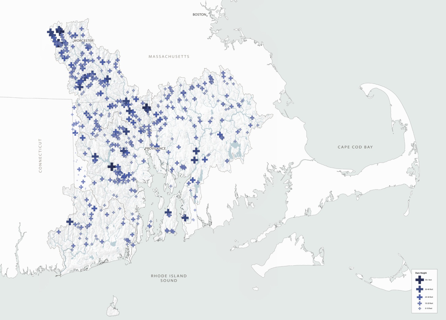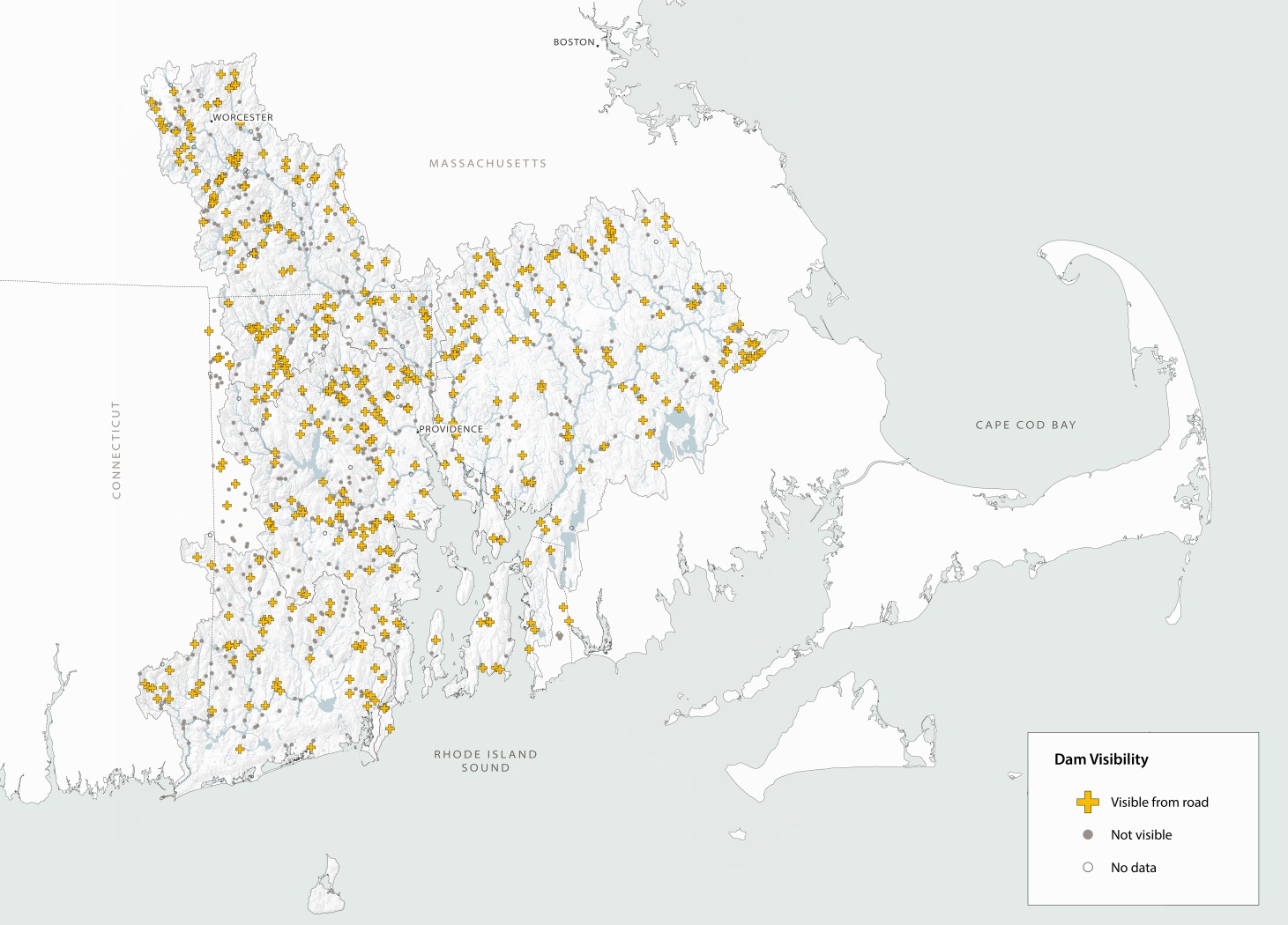 Visibility of dams within Narragansett Bay and coastal watersheds