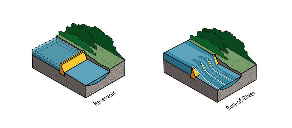 Dams operate in a range of ways depending on their intended purpose. Two common types of dams are run-of-river dams and detention dams, also known as storage dams. The vast majority of the dams in Narragansett Bay and corresponding coastal watersheds are run-of-river dams. Run-of-river dams have low water storage capacity and little impact on the water flowing over a dam. Unlike flood control dams, where water can be released depending on the season or in anticipation of a storm, run-of-river dams provide minimal control over how much water spills over the dam or is held behind the dam. Thus, water levels on either side of a run-of-river dam scarcely fluctuate; the amount of water that flows over the dam is essentially equivalent to the amount that would be present without the dam. Detention or storage dams create large impoundments that store water, and they are built with operational controls so that an operator can determine how much water is diverted for use, how much water is stored in the reservoir, and how much water goes downstream. Detention dams are often constructed to serve a specific purpose, such as municipal water supply, irrigation, or hydroelectric power. Flood control dams are a form of detention dam with the capacity to temporarily hold large volumes of water during flood conditions.