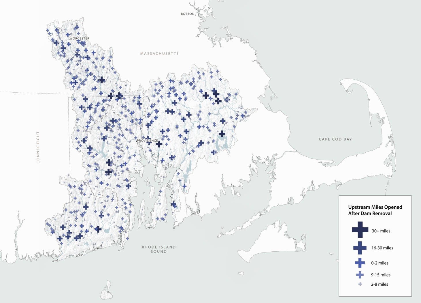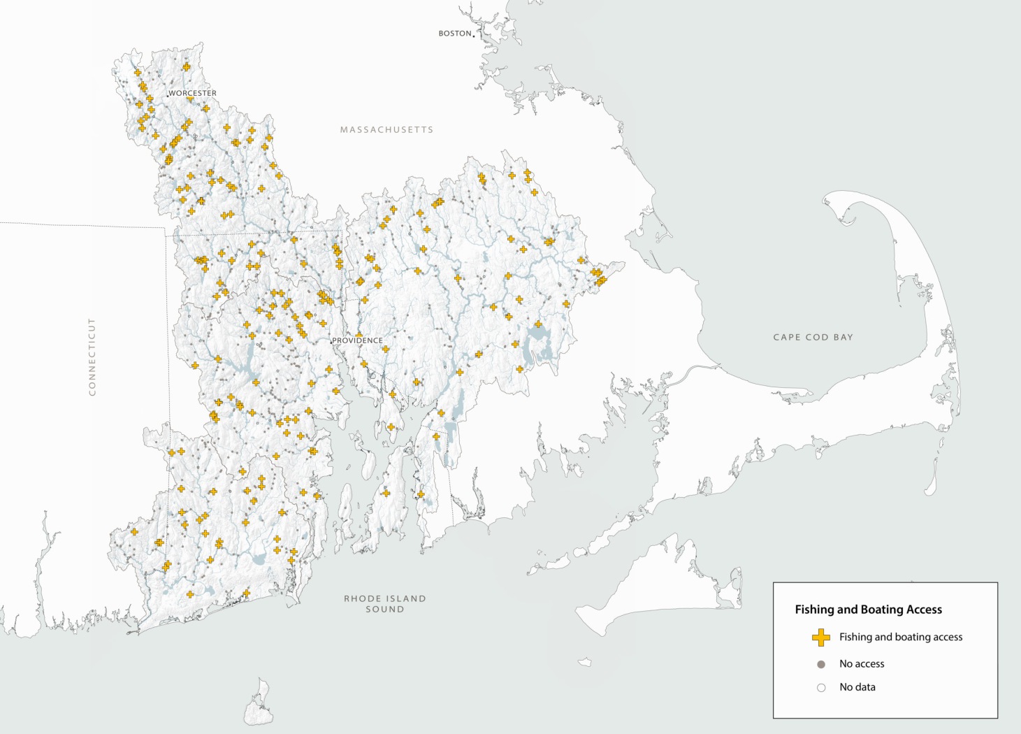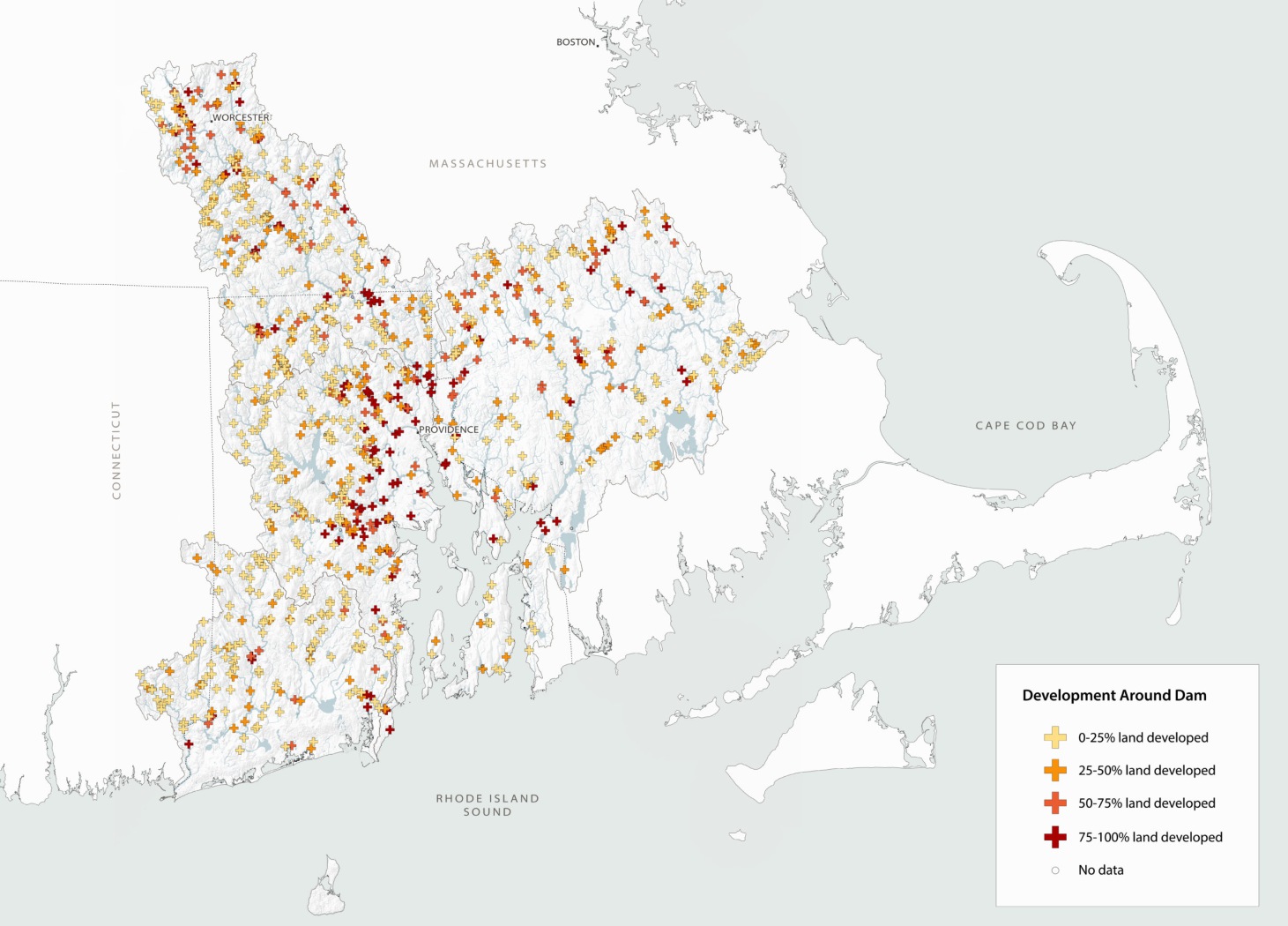 Water access points within Narragansett Bay and coastal watersheds. A dam in the middle of a forest may have a different level of attachment than one in the middle of town