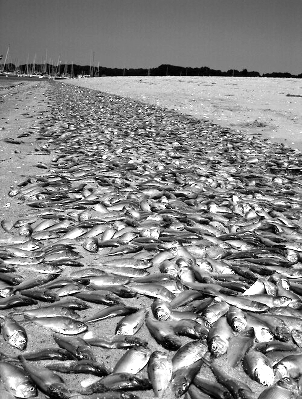 Juvenile menhaden fish kill, Greenwich Bay RI August 20, 2003