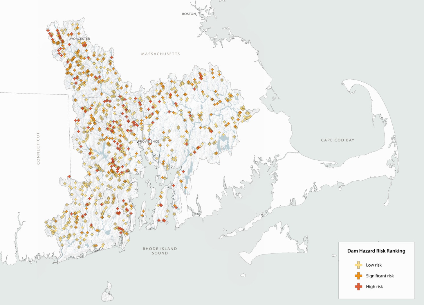 Dams having low, significant, or high hazard risk within Narragansett Bay and coastal watersheds