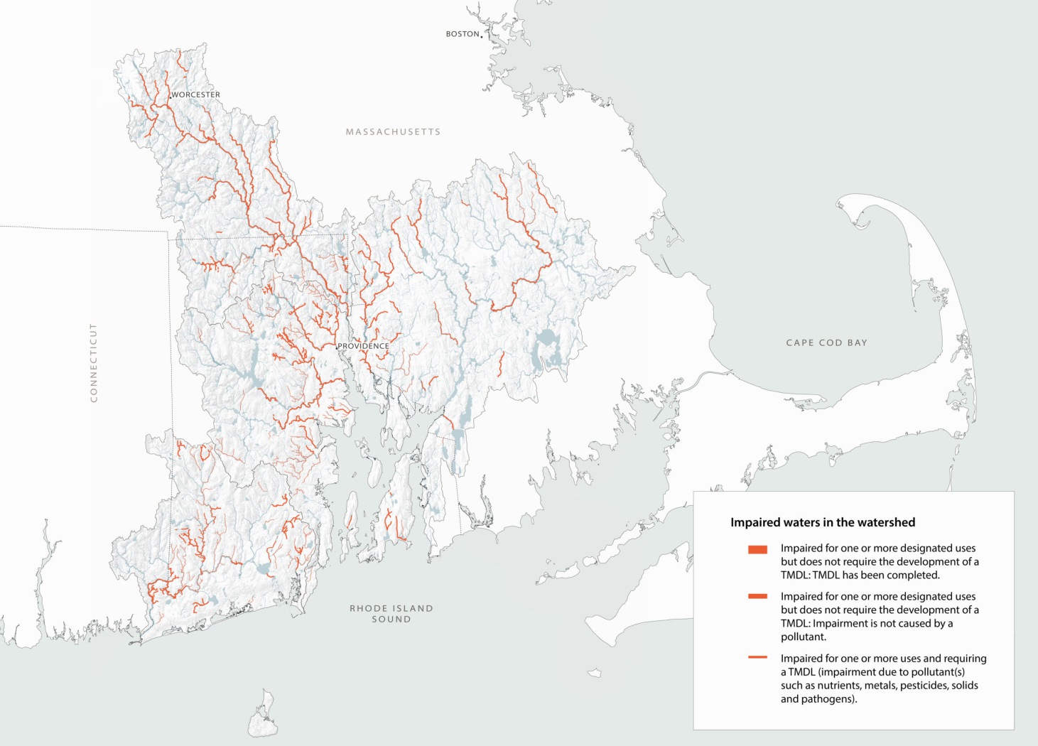 Map of impaired waters in the watershed. A dam in the middle of a forest may have a different level of attachment than one in the middle of town