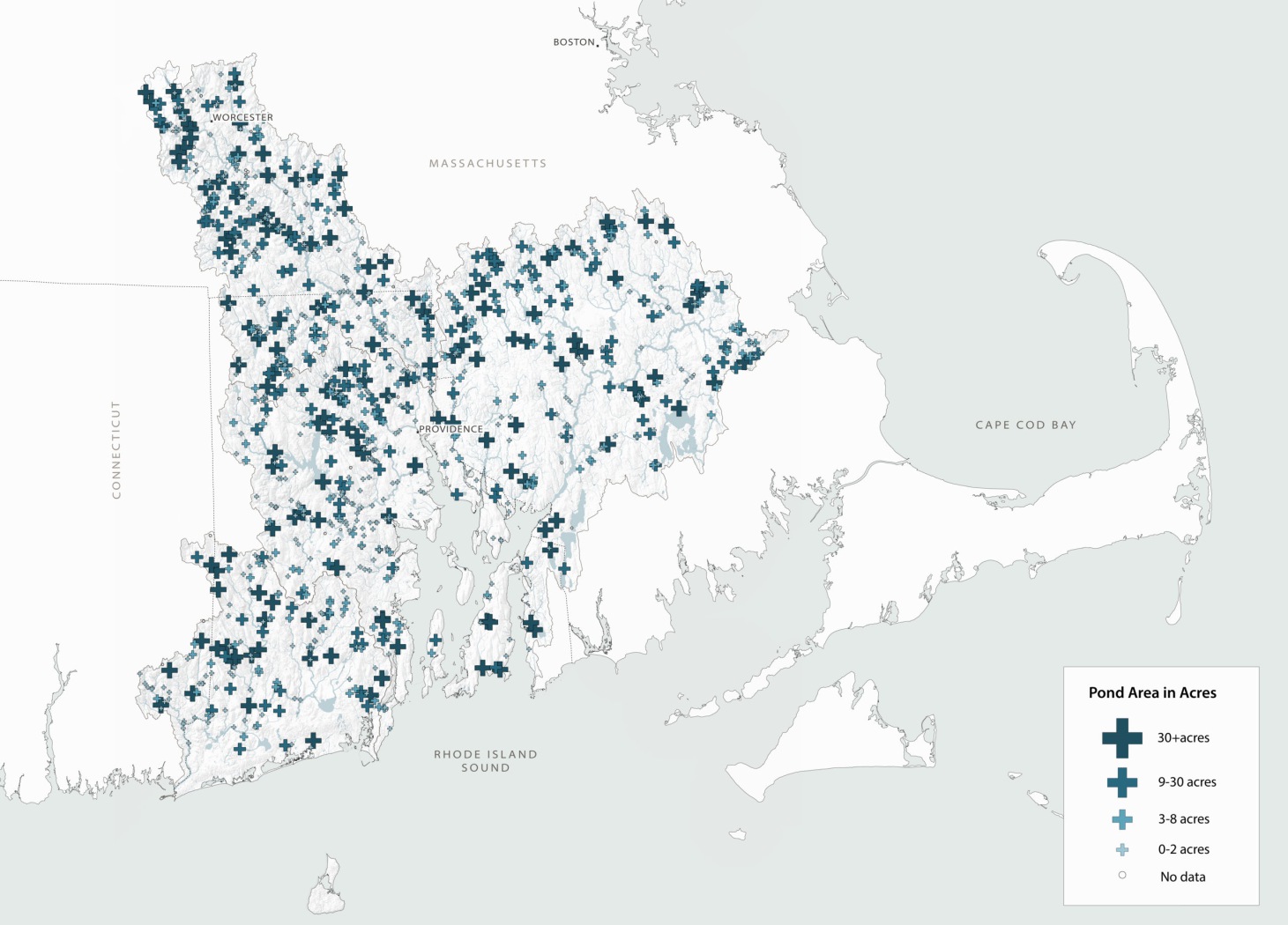 Size of reservoirs within Narragansett Bay and coastal watersheds. A dam in the middle of a forest may have a different level of attachment than one in the middle of town
