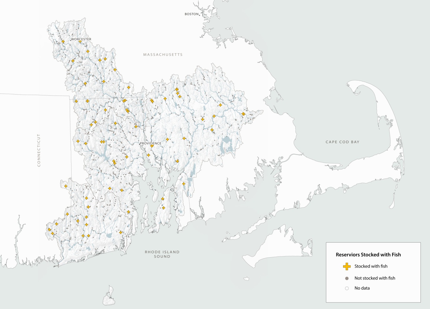 Reservoirs that are stocked with fish within Narragansett Bay and coastal watersheds. A dam in the middle of a forest may have a different level of attachment than one in the middle of town