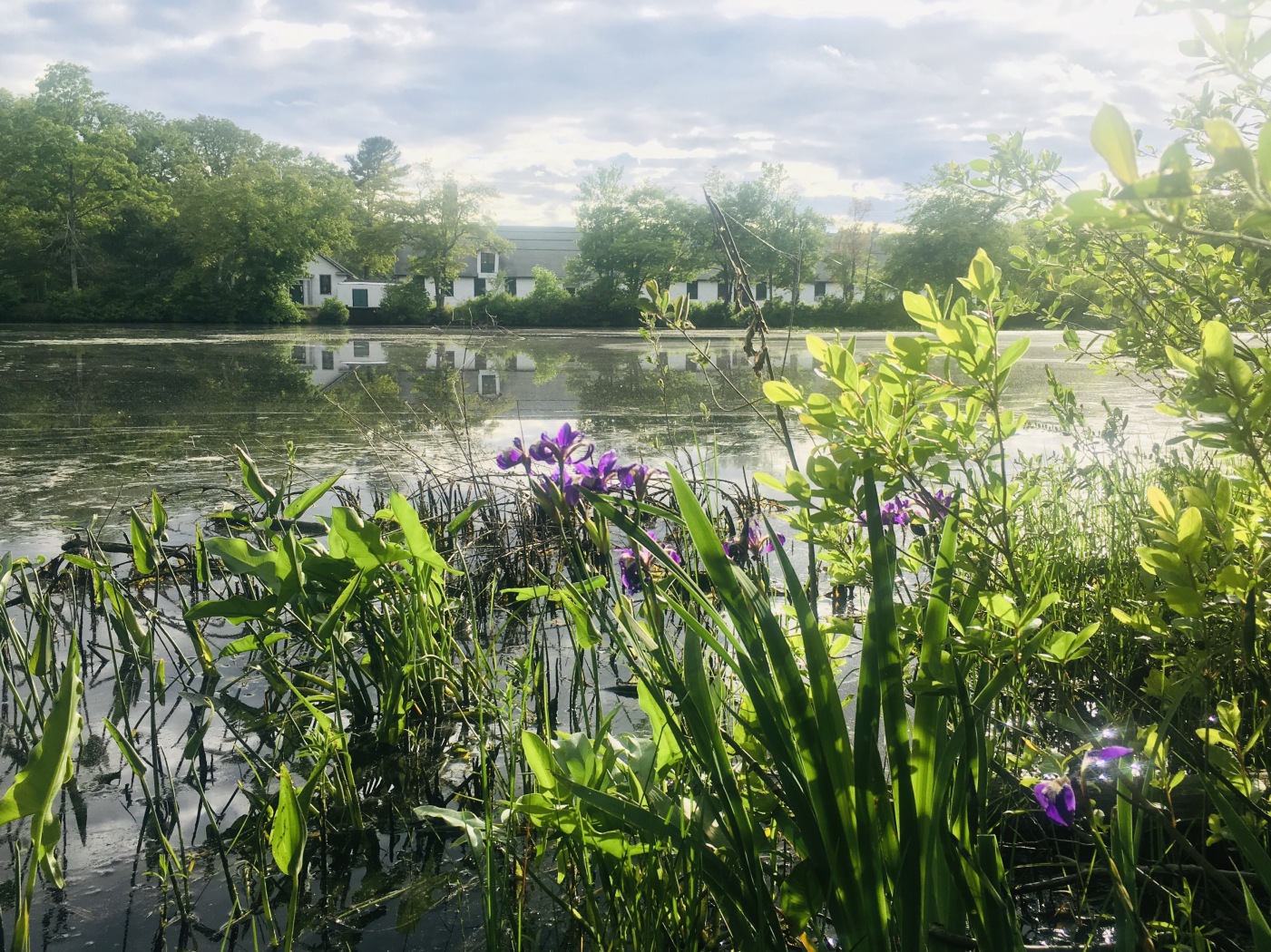 Photo across Forge Pond on the Westport River with historic mill in the background. Dams and their associated reservoirs and mills are part of the cultural landscapes of New England. Photo by Emily Vogler